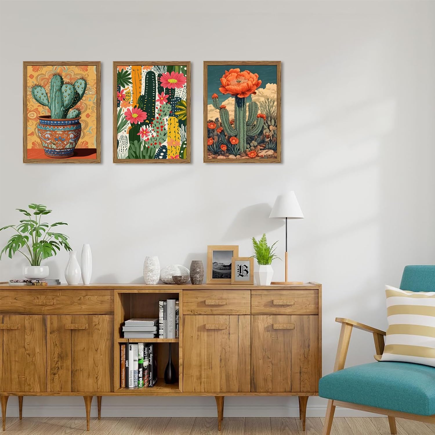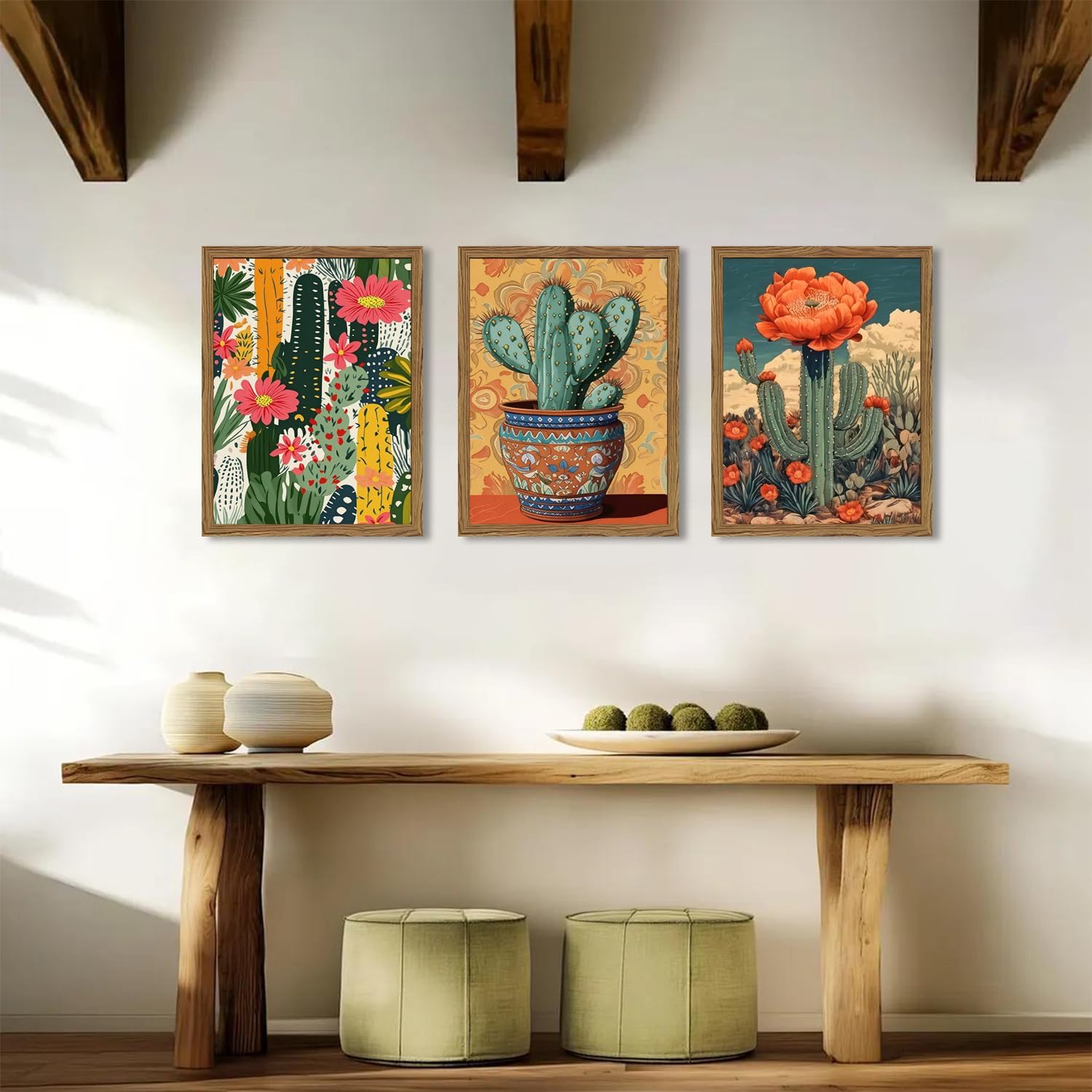【Mexican Cactus Wall Art】 Framed cactus canvas wall decor features colorful cactus floral and rustic desert landscapes, bringing southwestern warmth and boho style to your wall decor