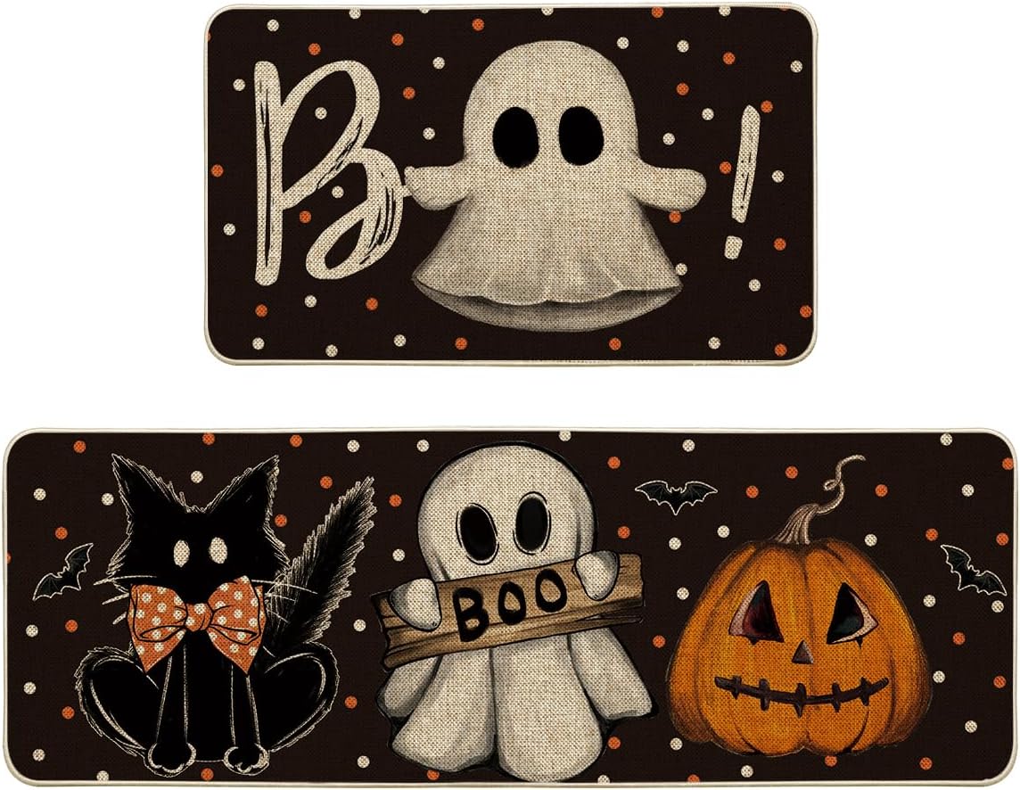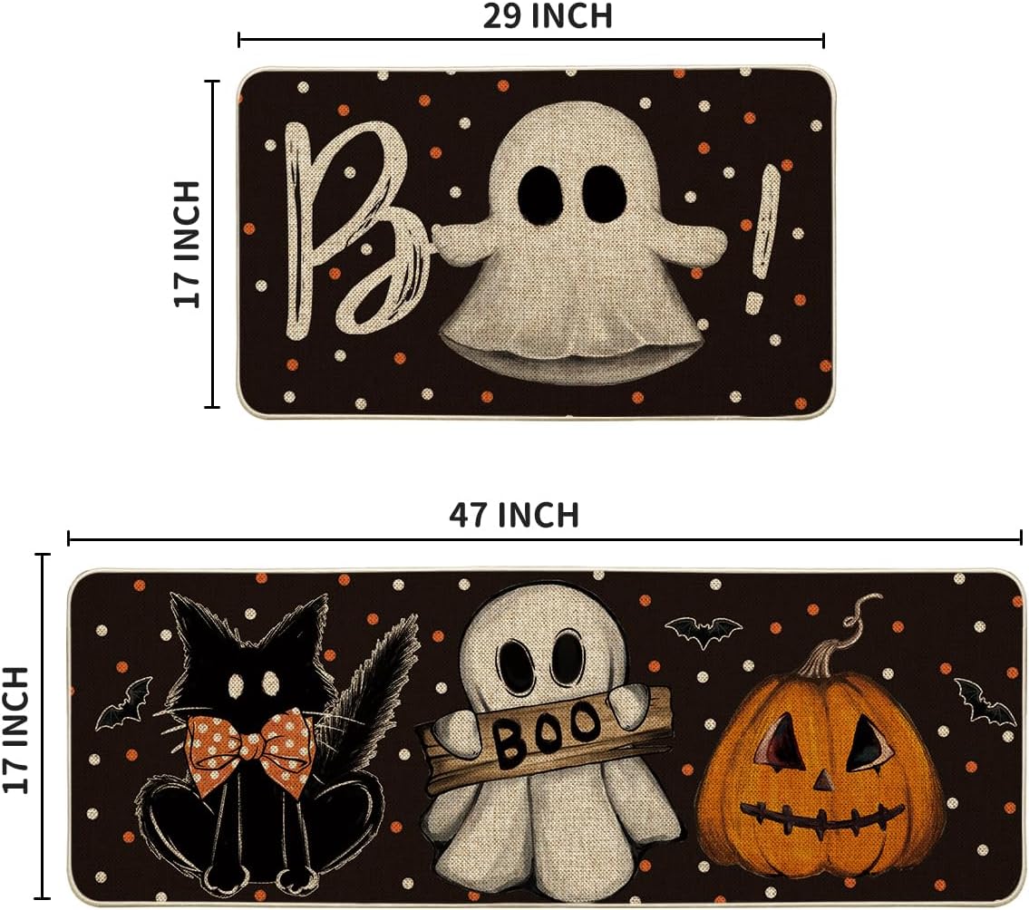 Customers find these kitchen rugs to be of great quality, with one noting excellent print quality. They are easy to clean, don’t slip or slide around, and are perfect for Halloween decor. The size receives mixed feedback, with some finding them nice while others say they’re very narrow. The material quality and thickness also get mixed reviews, with some praising the material while others find them not very thick.