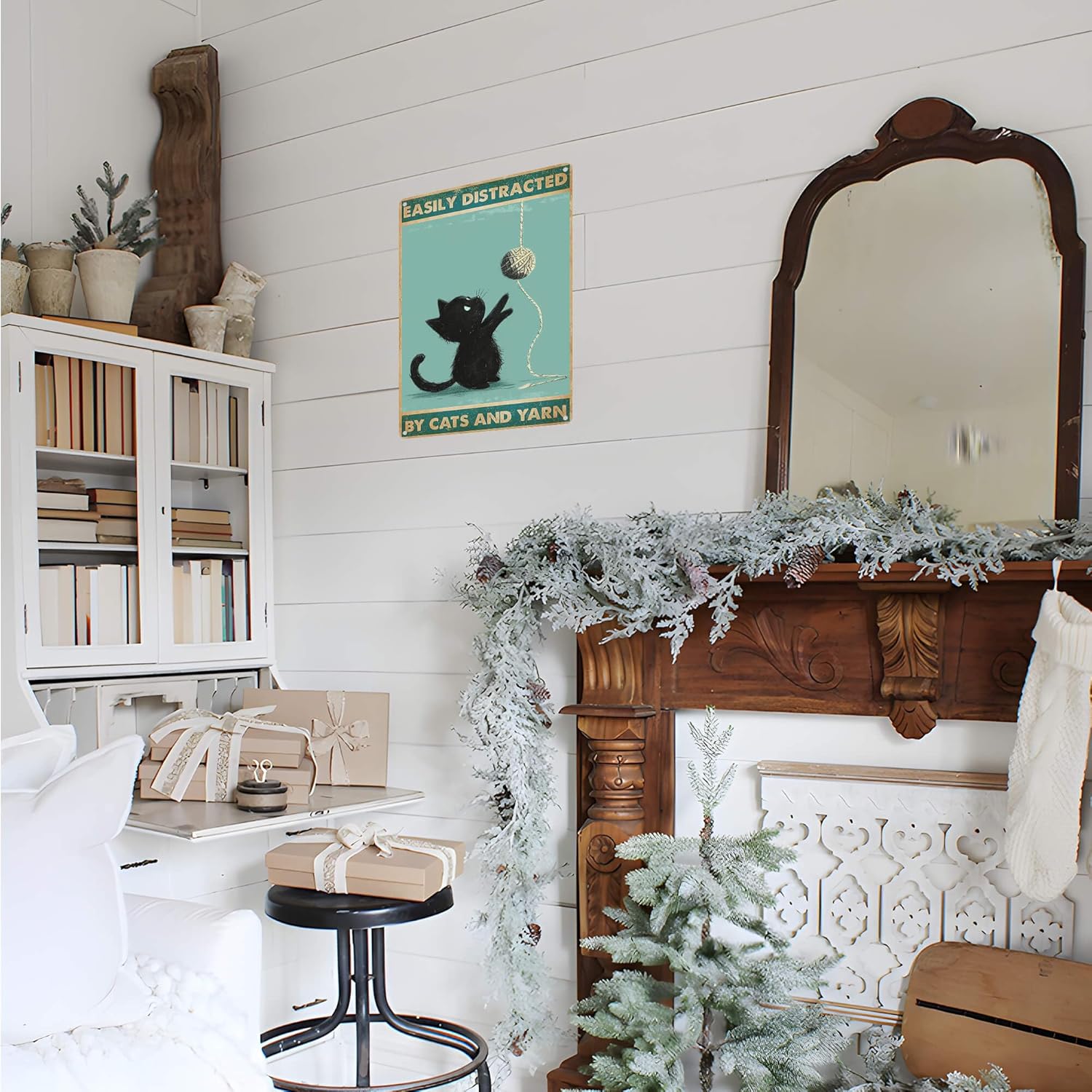High-Quality Aluminum Build: This “Easily Distracted By Cats and Yarn” tin sign is crafted with durable aluminum, ideal for any crafting area, knitting room, crochet room, sewing room, or home space.