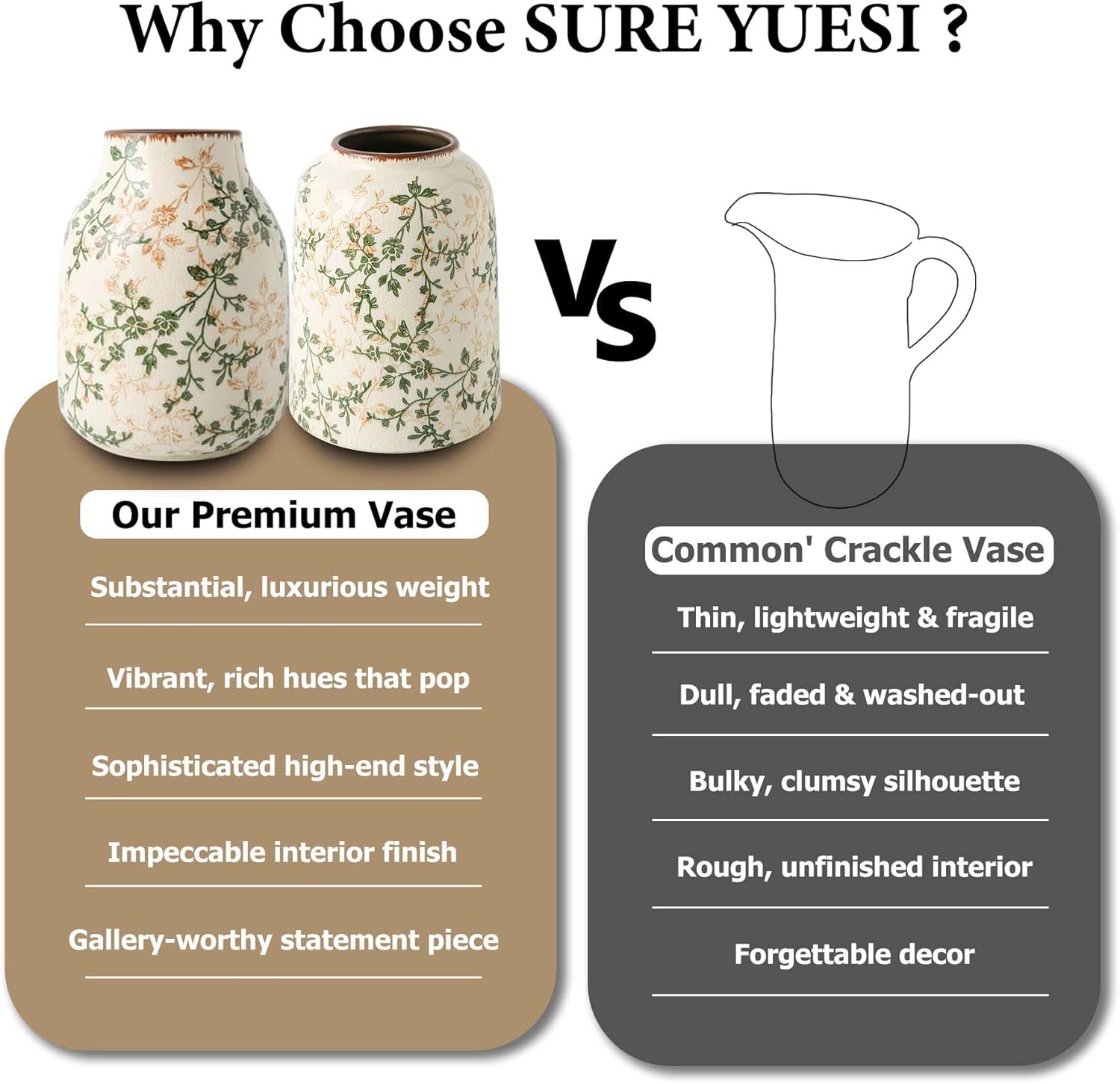 At SURE YUESI, we create thoughtful everyday products to make home life effortless. Our handmade Vintage Ceramic Farmhouse Flower Large Vase blend innovative design with quality materials for easy, worry-free cleaning. We aim to add delight to your life through considerate little touches.