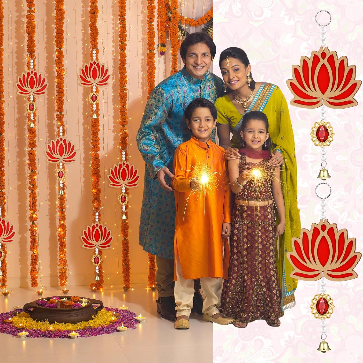 Diwali Home Wall Decor: the package includes 10 lotus hangings garlands, featuring with bells, providing ample pieces to decorate your space beautifully; The generous quantity allows for various placement options, helping you create a vibrant and cohesive festive aesthetic throughout your home during the joyous Diwali celebration