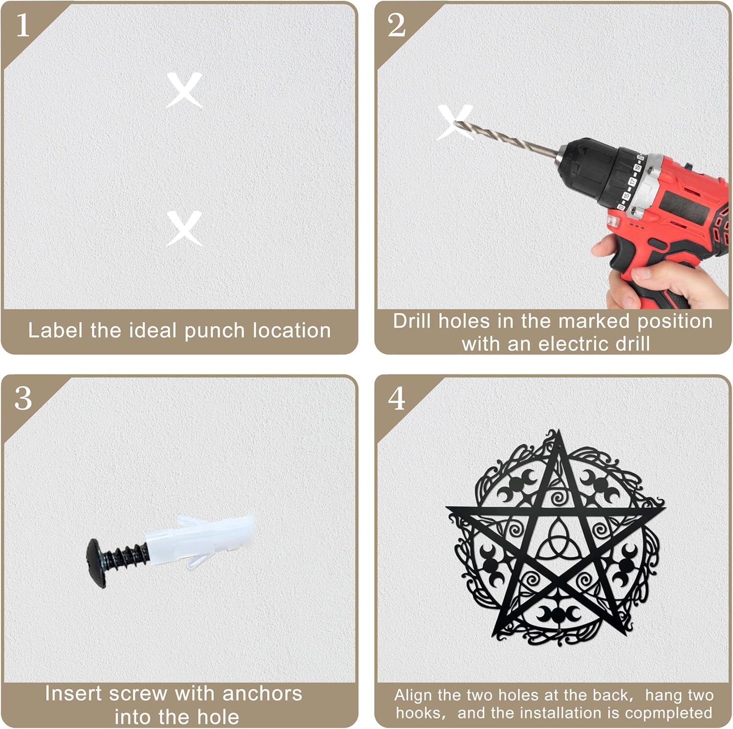 🌒【Durable and Reliable】- Crafted with high-grade iron material, this witch wall decor pentagram decor ensures long-lasting performance. Its matte black paint prevents rust, fading, and corrosion, promising a timeless aesthetic appeal.
