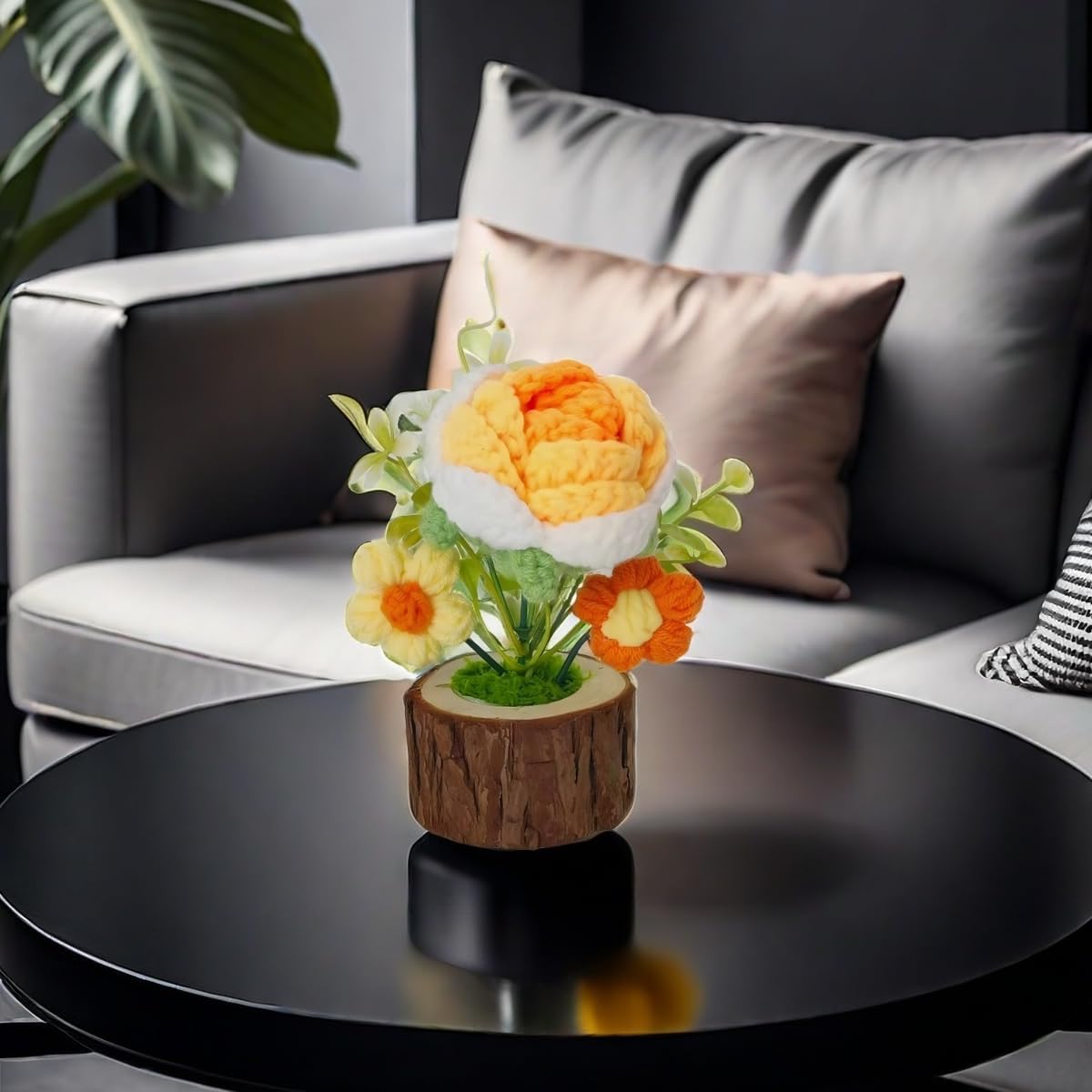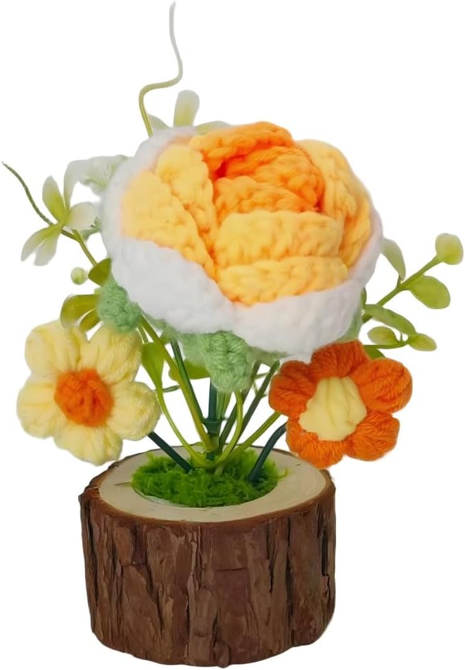 Natural Look,Effortless Care:Artfully arranged to mimic a living potted plant. Enjoy the lifelike beauty of our crochet flower bouquetwithout any maintenance–simply place it and enjoy its cheerful presence every day.