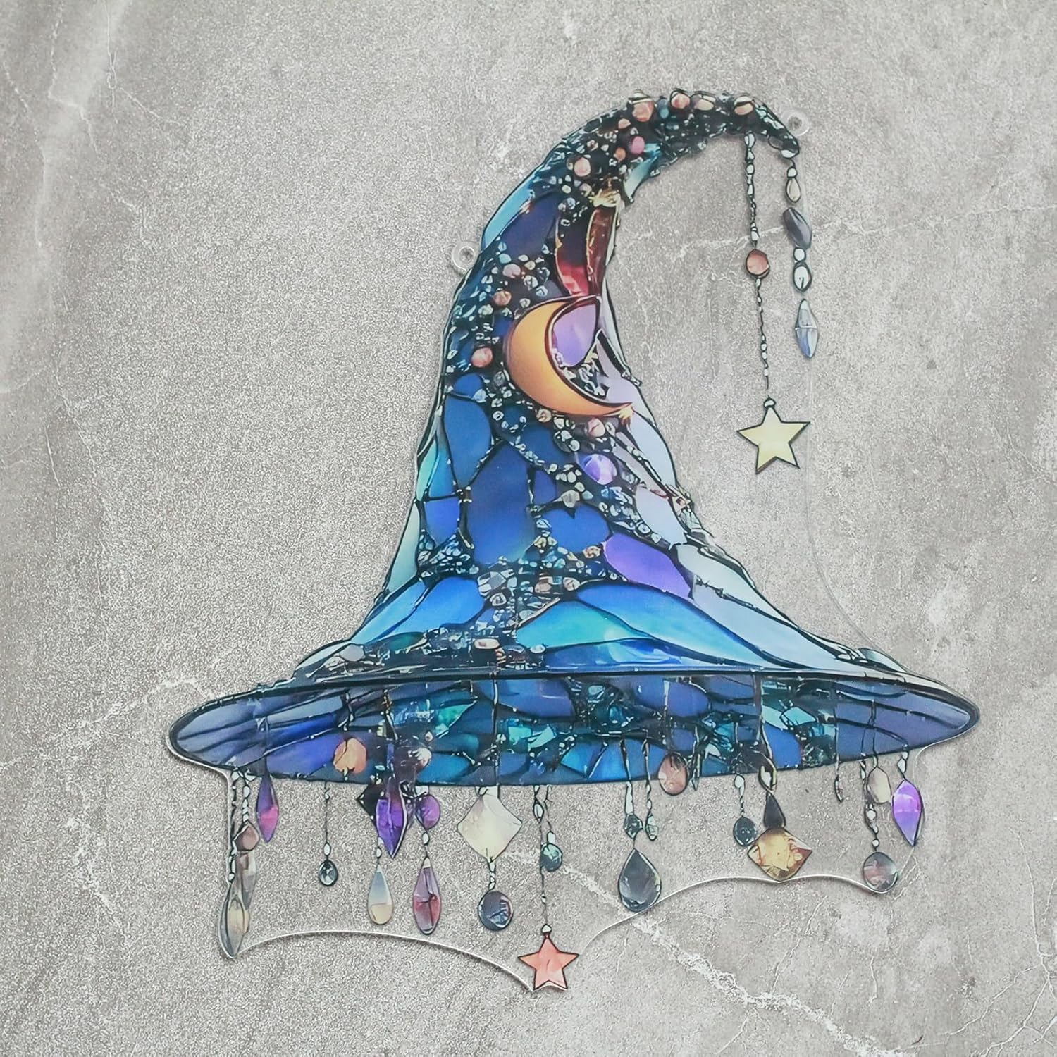 DESIGN THEME: Enchanting moonlight witch hat sun catcher featuring a mystical silhouette perfect for window display and home decoration