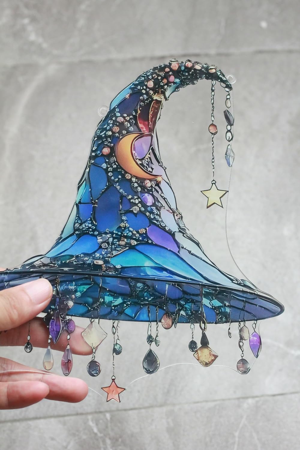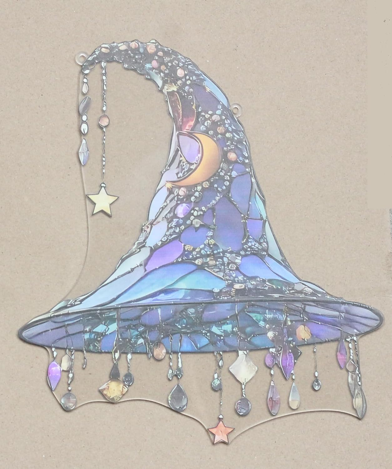 Transform your living space with this enchanting Moonlight Witch Window Hanging Sun Catcher from Vrogadso. This whimsical decorative ornament features a charming witch hat design that casts magical patterns when light streams through it. Perfect for adding a touch of mystical flair to any window, this sun catcher creates an ethereal ambiance as it catches and disperses natural light throughout your room. The delicate design makes it an ideal accent piece for Halloween decor, yet its artistic appeal allows it to serve as year-round decor for those who appreciate witchy aesthetics. The hanging ornament adds character to your home while creating mesmerizing light effects that change throughout the day. Whether displayed in your kitchen window, living room, or bedroom, this decorative piece brings a dash of whimsy and supernatural charm to your space.