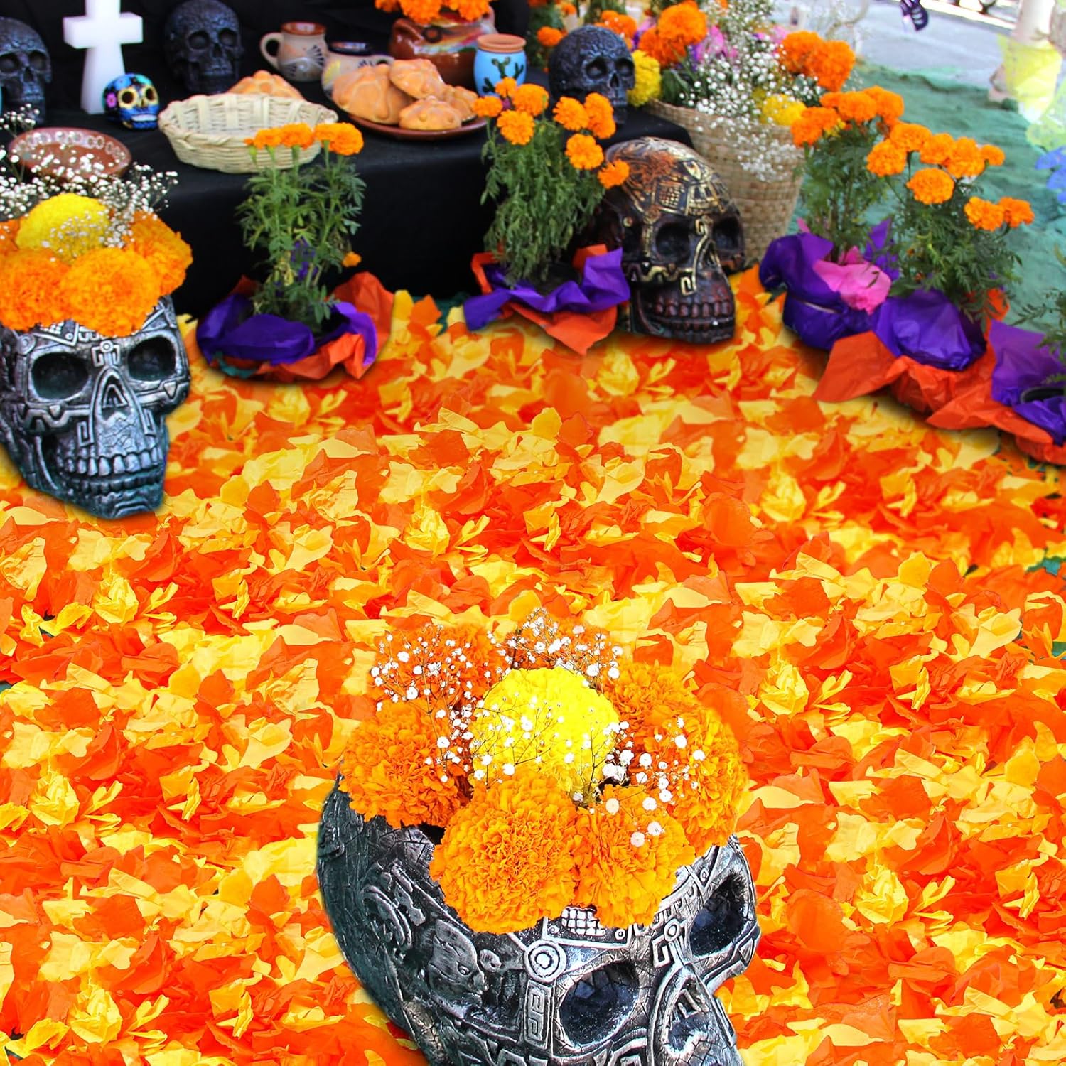 Ideal for Festive Decorations: the marigold artificial decorations are a delightful addition to any festive celebration, adding a harmonious touch to holidays like Day of the Dead, Diwali, Thanksgiving, Halloween, and Christmas; These petals help create a rich, festive atmosphere that enhances your special occasions with warmth and color