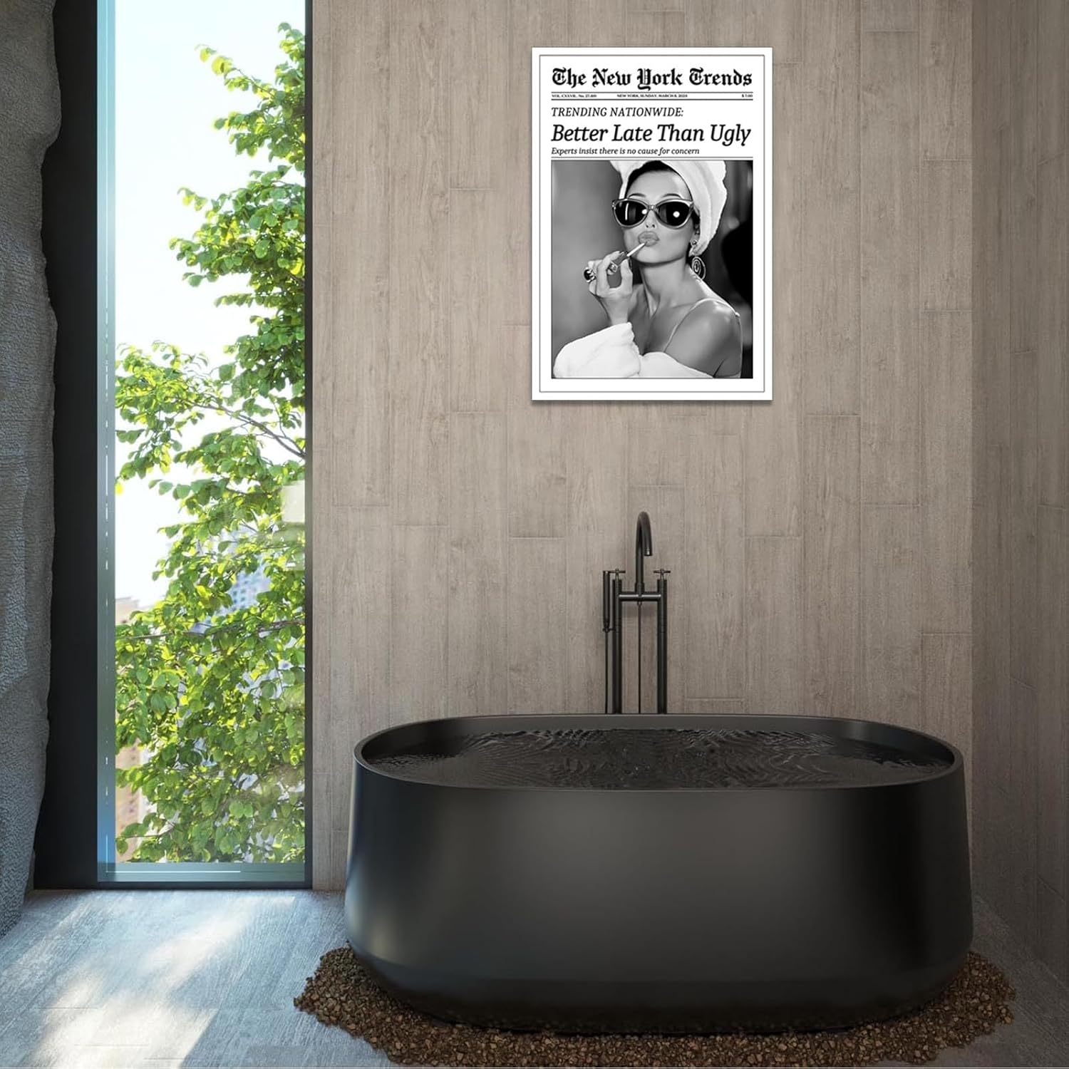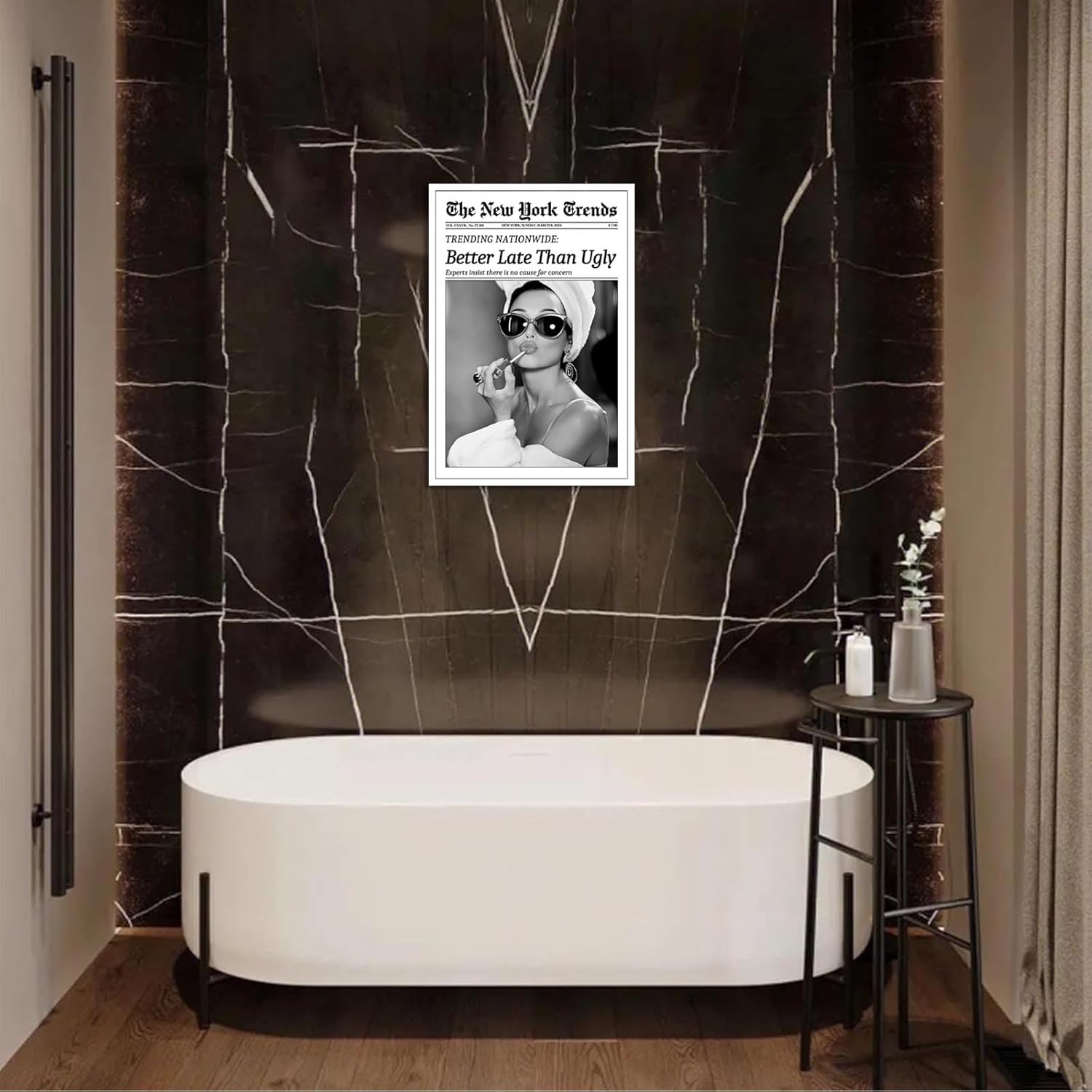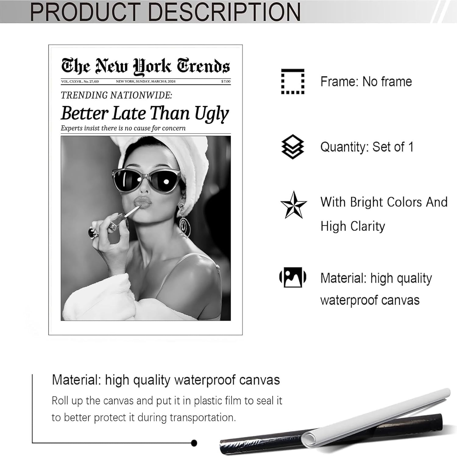Vintage Aesthetic Design: Embrace the charm of yesteryears with these vintage “Better Late than Ugly” newspaper posters, artistically combining black and white hot girl canvas wall art for a nostalgic touch to your decor.