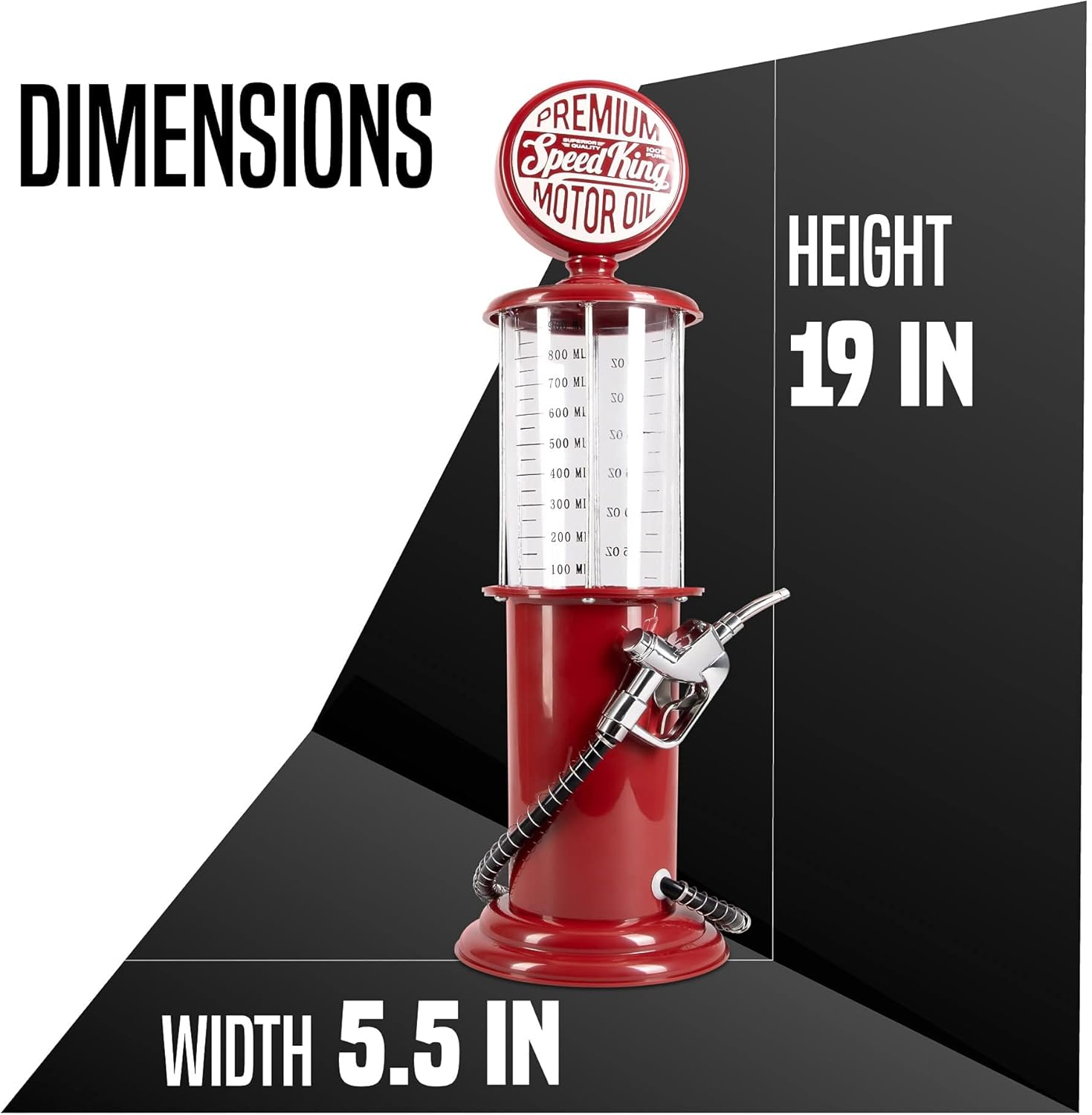 STYLISH BAR DECOR: Upgrade the design of your home bar with this automatic drink dispenser that is one of the few bar accessories that delivers on design and practicality. The plastic drink dispenser is vintage 50s red design with a push down pump dispenser that delivers your drink smoothly and is one of the great man cave accessories