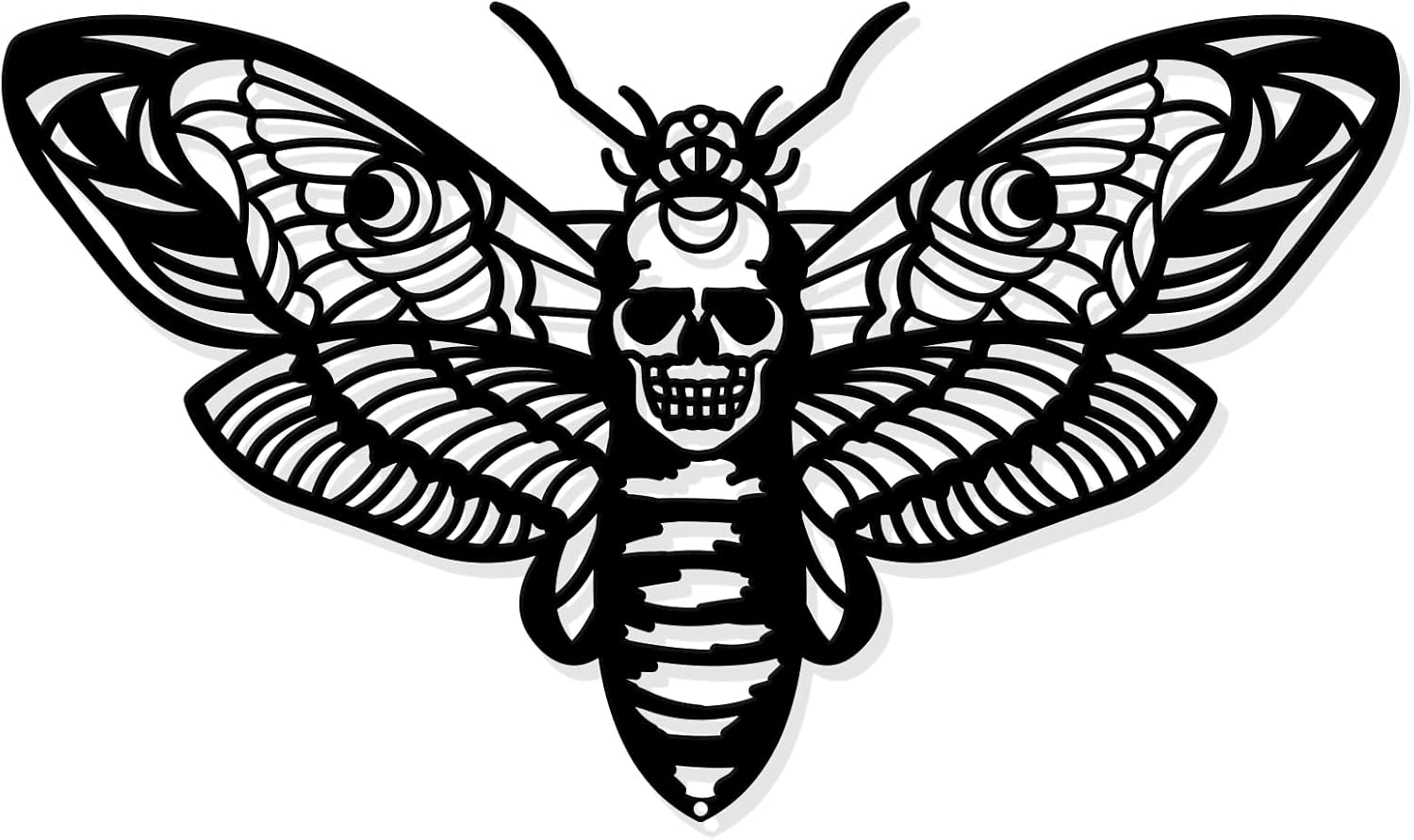 NBEADS Death Head Moth Metal Wall Decor, 6.9×11.8 Black Wall Hanging Decor Gothic Silhouette Wall Art for Bedroom Living Room Bathroom Office Garden Wall Decoration