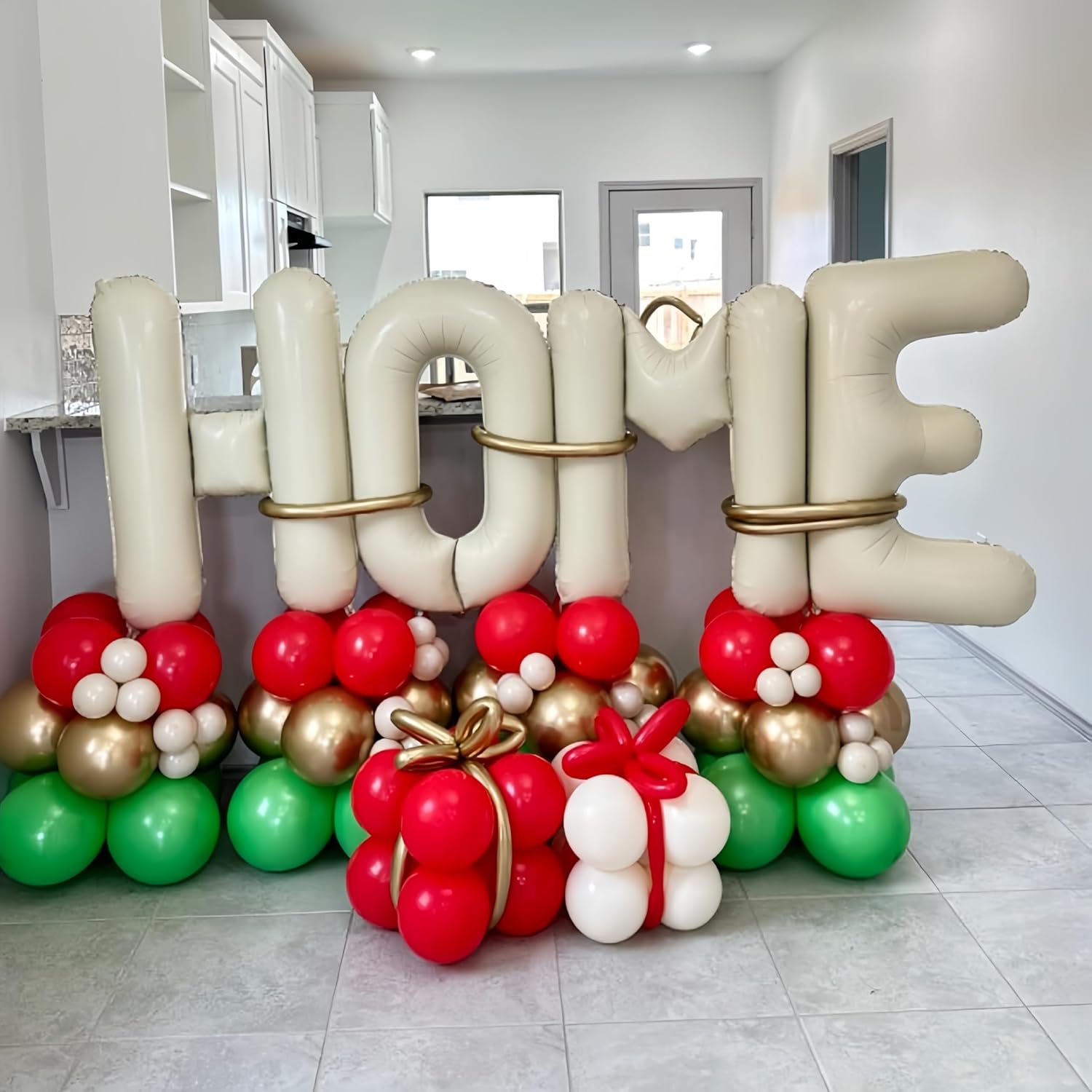 HOME Balloons for Housewarming Party Decoration: You will get 4 pieces 40 inch large beige H + O + M + E foil letter balloons banner with 1pc balloon ribbon, perfect for house warming party, new home sweet party, welcome home party decorations.