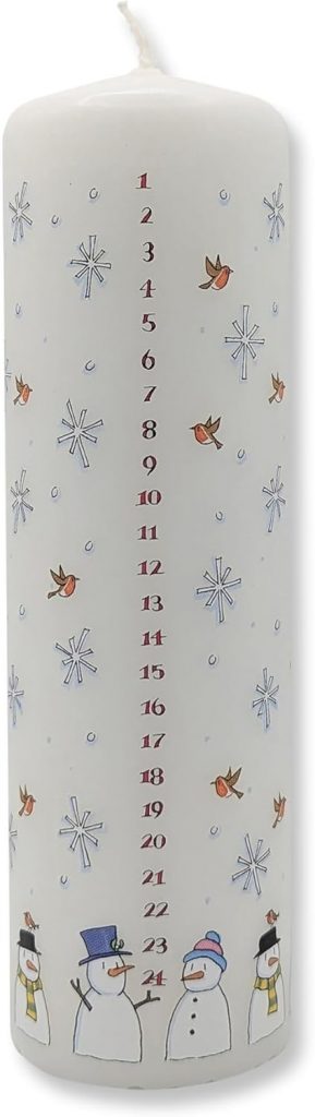Bring the magic of Christmas into your home with the Alison Gardiner Snowmen Advent Pillar