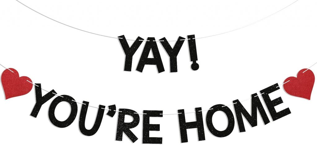 Product description ✨𝐄𝐗𝐐𝐔𝐈𝐒𝐈𝐓𝐄 𝐏𝐑𝐎𝐃𝐔𝐂𝐓𝐈𝐎𝐍✨ The “Yay! You’re Home!” Welcome Home/Homecoming Party Decor Banner has bright