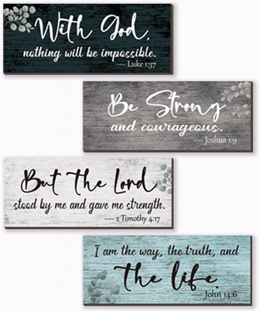 4 Pieces Motivational Religious Decor For Home Bible Verses Wall Decor Inspirational Wooden Christian Signs Rustic Farmhouse Prayer Decor for Living Room Office Bedroom Bathroom(Fresh,10×4″)